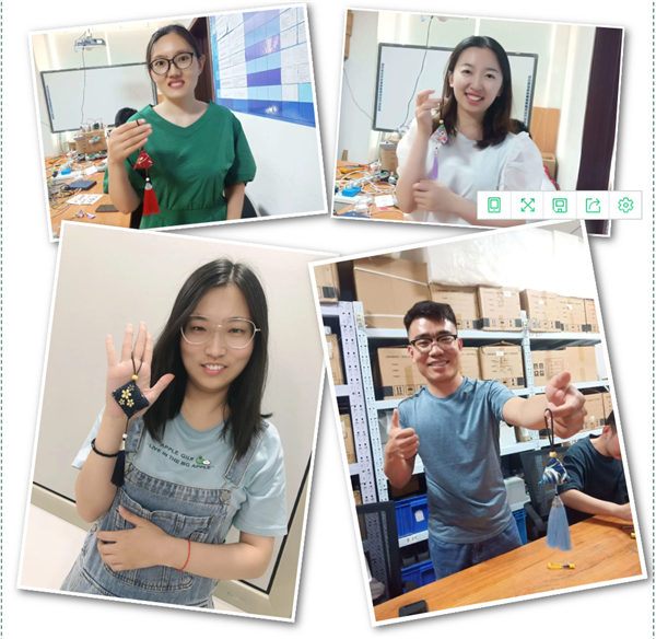 端午节来临之际,为弘扬传统民俗文化,增进员工之间的感情,活跃公司工作氛围,6月24日正晨股份组织开展端午手工体验交流活动,手工体验包含乘凉团扇DIY、艾草香囊手作以及结五彩绳,全体员工积极参与其中。