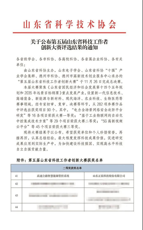 近日,山东省科学技术协会公布了第五届山东省科技工作者创新大赛评选结果,赢博手机入口《高速公路智慧能源管控系统》荣获山东省科技工作者创新大赛二等奖!