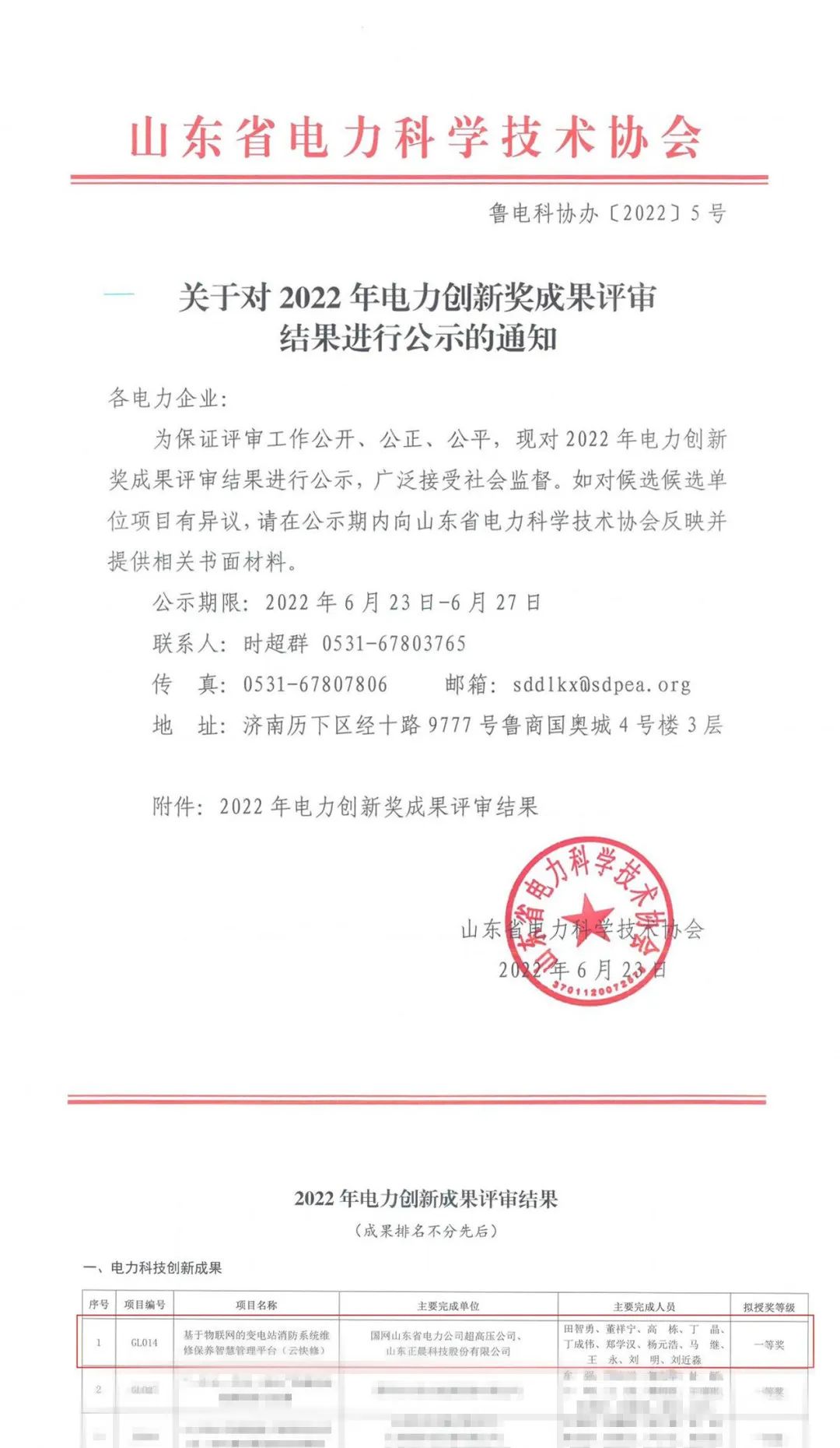 近日,赢博手机入口与国网山东省电力公司超高压公司联合研发的《基于物联网的变电站消防系统维修保养智慧管理平台(云快修)》通过了山东省电力科学技术协会评审,荣获2022年电力科技创新成果一等奖,并获推荐申报中国电力企业联合会2022年度电力创新奖。
