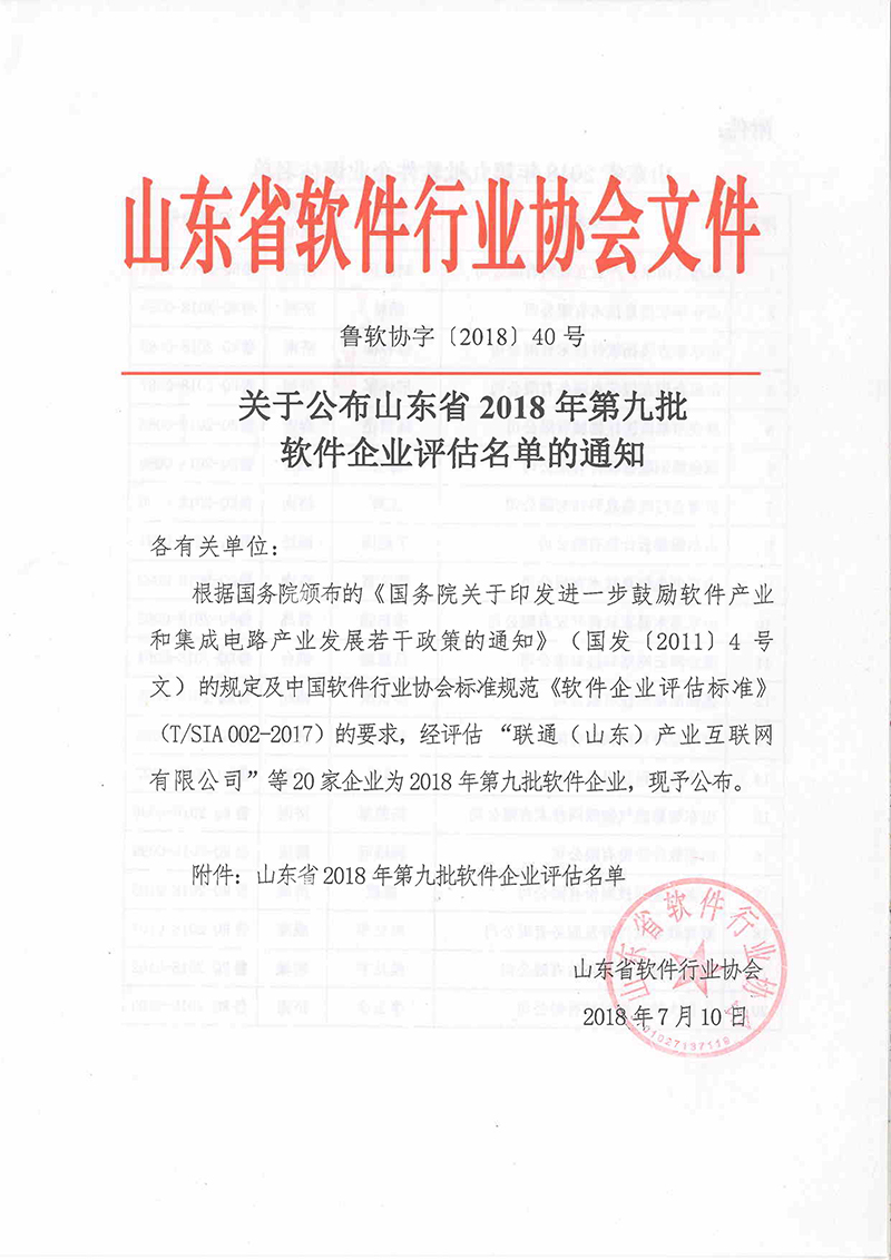 近期,根据国务院颁布的《国务院关于印发进一步鼓励软件产业和集成电路产业发展若干政策的通知》的规定及中国软件行业协会标准规范《软件企业评估标准》的要求,经过山东省软件协会的严格审查,赢博手机入口通过了软件企业认定的严格评审程序,被授予山东省2018年第九批软件企业。
